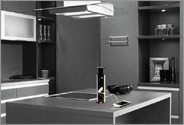 - Убедитесь, что под рабочей поверхностью достаточно места для блока розеток, когда он находится в закрытом положении.