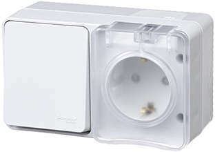 | Тип изделия | блок: выключатель 1-полюсный на 1 направление + розетка силовая (штепсельная) с заземляющим контактом и защитными шторками |