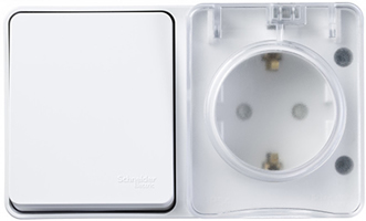Блок Schneider Electric ATN540170 AtlasDesign Profi54 (выключатель 1-клавишный 10 А + розетка 1-местная 16 А с заземлением, шторками и защитной крышкой) открытой установки, белый