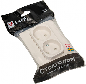 Розетка двухместная EKF EXR10-102-10 "Стокгольм" (10 А, IP20) скрытой установки, с защитными шторками, в сборе, белый