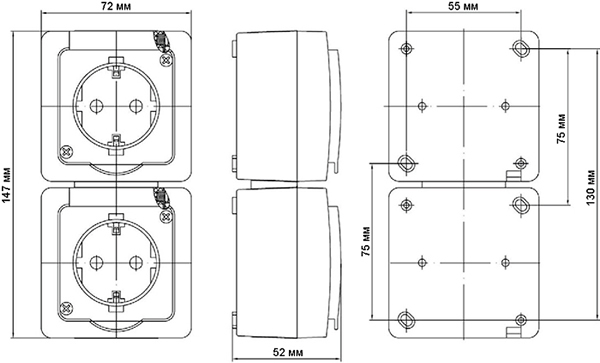 | Тип изделия | розетка силовая с заземляющими контактами, с крышками |