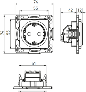 | Тип изделия | розетка штепсельная без заземляющего контакта, с защитными шторками |
