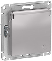 Розетка одноместная Schneider Electric ATN000346 AtlasDesign (16 А, IP20) скрытой установки, с заземлением, с защитными шторками, с крышкой, алюминий