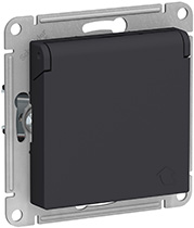 Розетка одноместная Schneider Electric ATN001046 AtlasDesign (16 А, IP20) скрытой установки, с заземлением, с защитными шторками, с крышкой, карбон