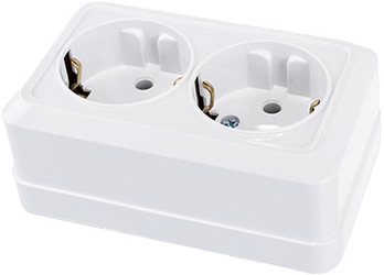 Розетка двухместная IN HOME 7128 Bolleto (16 А, IP20) открытой установки, с заземлением, белый