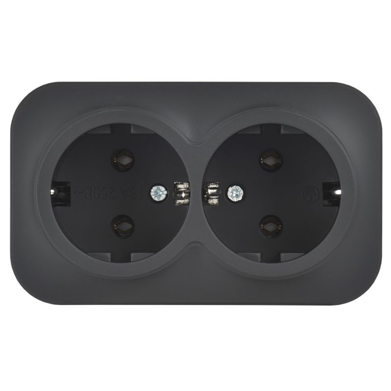 Розетка двухместная IEK РС22-3-ХЧм Glory (16 А, IP20) открытой установки, с заземлением, черный матовый