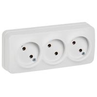 Розетка трехместная IEK РС23-2-ХБм Glory (10 А, IP20) открытой установки, белый матовый
