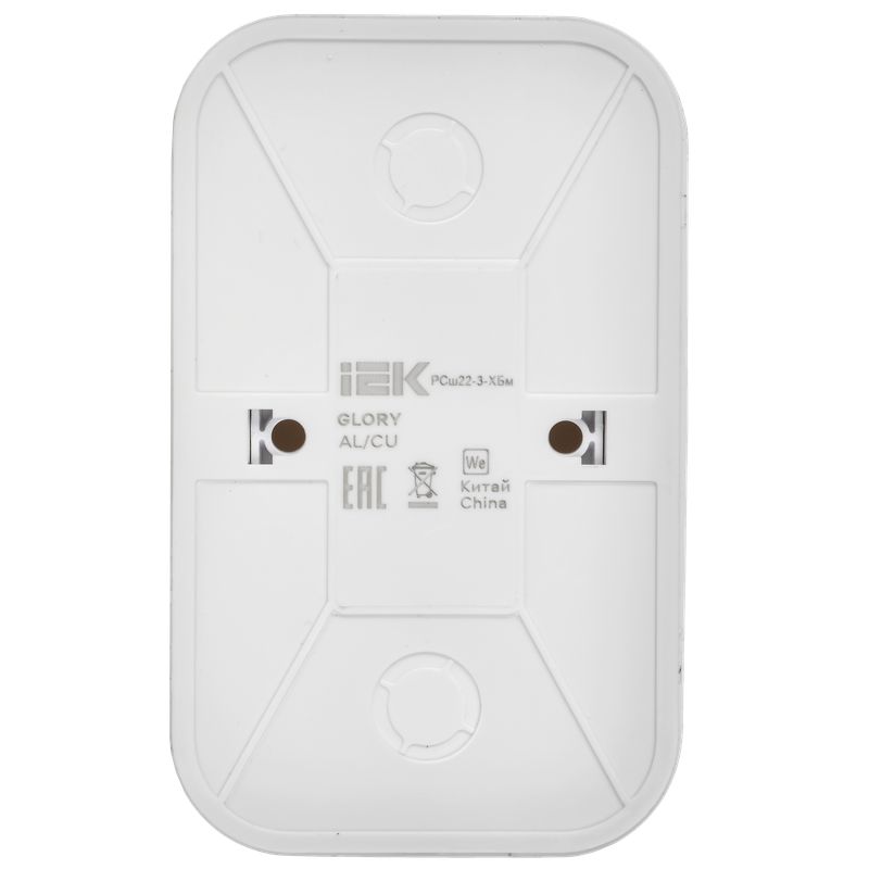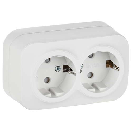 Розетка двухместная IEK РСш22-3-ХБм Glory (16 А, IP20) открытой установки, с заземлением и защитными шторками, белый матовый