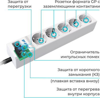 Схема защиты сетевого фильтра Pilot sG включает в себя: