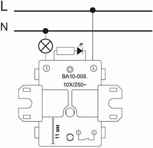 - Выключатели на ток 10 AX подходят для большинства типов ламп, включая люминесцентные.
