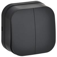 Выключатель двухклавишный IEK ВС20-2-0-ХЧм Glory (10 А, IP20) открытой установки, черный матовый
