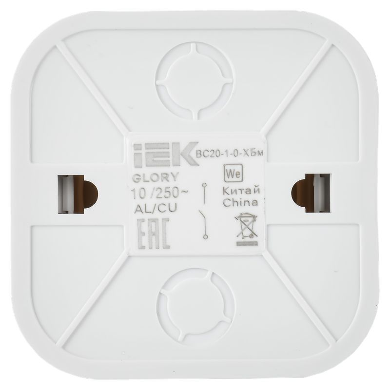 Выключатель одноклавишный IEK ВС20-1-0-ХБм Glory (10 А, IP20) открытой установки, белый матовый