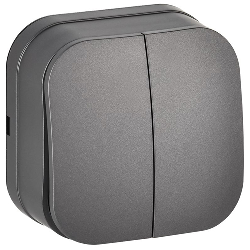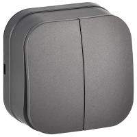 Выключатель двухклавишный IEK ВС20-2-0-ХСм Glory (10 А, IP20) открытой установки, сталь матовый