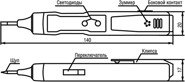 Применяется для контактного определения наличия напряжения, целостности цепей приборов и бесконтактного определения наличия электромагнитных полей.