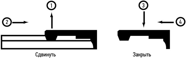 - Установите клипсу в исходное положение (3, 4) до щелчка.