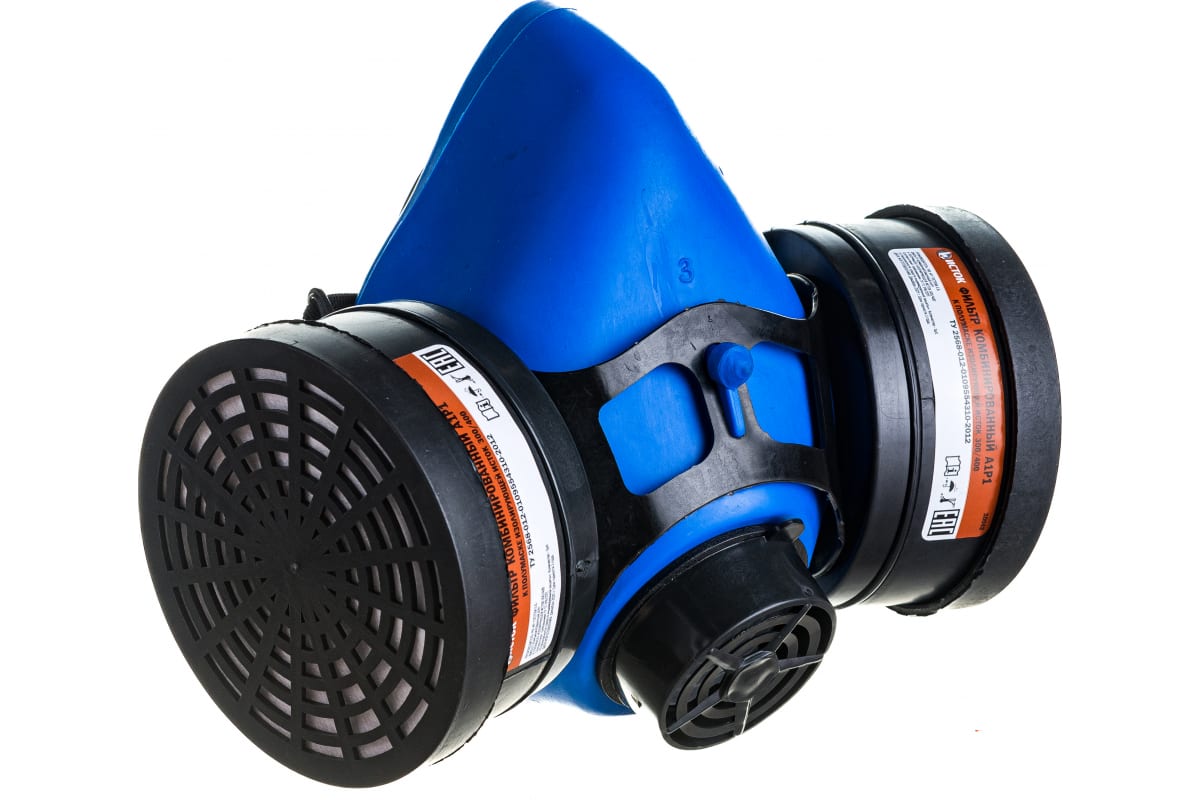 Комплектуется сменными комбинированными фильтрами А1Р1 (2 шт.), которые обеспечивают защиту от вредных веществ в виде аэрозолей, органических паров и газов с температурой кипения выше +65°C, таких как пары бензина и керосина, циклогексан, сероуглерод, толуол, ксилол, различные спирты и эфиры.