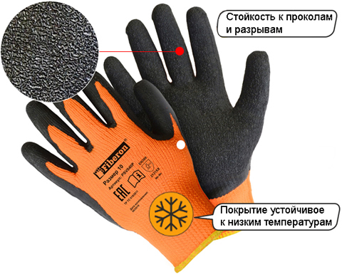 Перчатки акриловые утепленные Fiberon PSV040P с латексным покрытием, размер 10