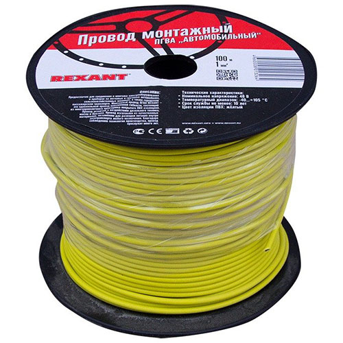 Провод монтажный ПГВА 1 х 1 кв.мм Rexant 01-6522 (CCA), желтый, 100 м