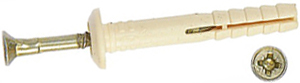 Распорный дюбель в комплекте со стальным оцинкованным гвоздем-шурупом с увеличенным подголовником используется для крепления предметов к плотным полнотелым материалам, таким, как кирпич, бетон, камень.