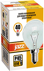 Лампа накаливания Jazzway P45 240V 40W E14 Clear (шар, E14, 40 Вт, 380 лм), прозрачный