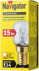 Лампа накаливания Navigator NI-T25-15-230-E14-CL (E14, 15 Вт, 70 лм) для духовки