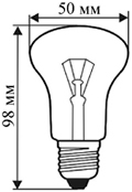 Лампа накаливания 60 Вт (А50 стандарт, E27, 36 В, 950 лм), прозрачная
