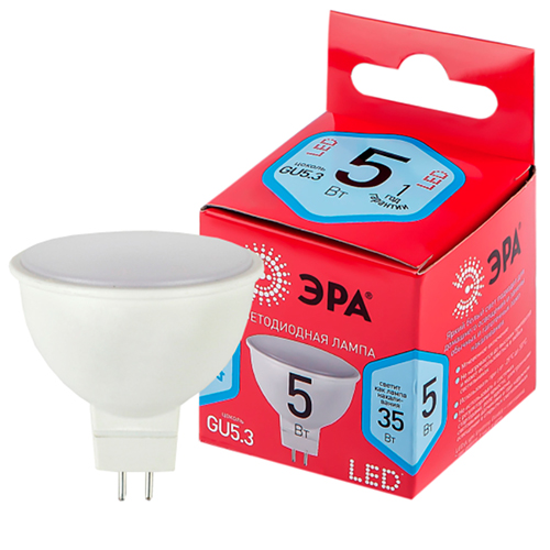 Лампа светодиодная Red Line LED MR16-5W-840-GU5.3 R "Эра" (5 Вт, 400 лм, 4000 К)