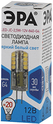 Лампа светодиодная LED JC-2,5W-12V-840-G4 "Эра" (2,5 Вт, G4, 12 В, 200 лм), цвет свечения нейтральный белый
