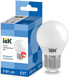 Лампа светодиодная IEK LLE-G45-5-230-65-E27 (шар G45, 5 Вт, E27, 450 лм), цвет свечения холодный белый