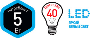 | Мощность эквивалента, Вт | 40 (лампа накаливания) |