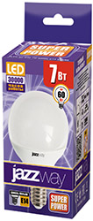 Лампа светодиодная Jazzway PLED-SP G45 7 Вт (шар, Е14, 560 лм), цвет свечения холодный белый