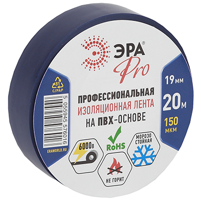 Изолента ПВХ 0,15 х 19 мм "Эра" PRO150BLUE, синий, 20 м