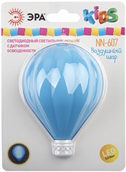 Светильник-ночник светодиодный "Эра" NN-607-LS-BU "Воздушный шар" оснащен сенсором света, включается автоматически, когда становится темно.