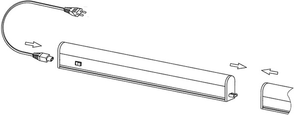 - Для подключения светильника присоединить сетевой шнур к розетке, встроенной в торец светильника.
