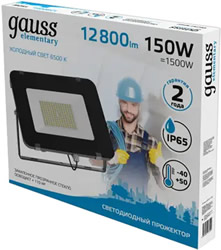 Прожектор светодиодный Gauss 691511150 Elementary (150 Вт, 12800 лм, 6500 К, IP65), черный