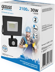 Прожектор светодиодный Gauss 628511330 Elementary-S (30 Вт, 2100 лм, 6500 К, IP65) с датчиком движения, черный